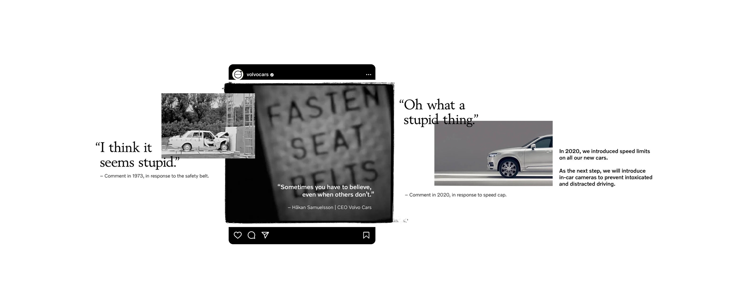 Today, it’s hard to imagine a car without a seatbelt. But after Volvo first introduced it in 1959, it received heavy criticism. Some even called it a violation of human rights. As Volvo was about to announce two new safety features in 2020, speed cap and driver-facing cameras, we realized that the reactions were almost identical.