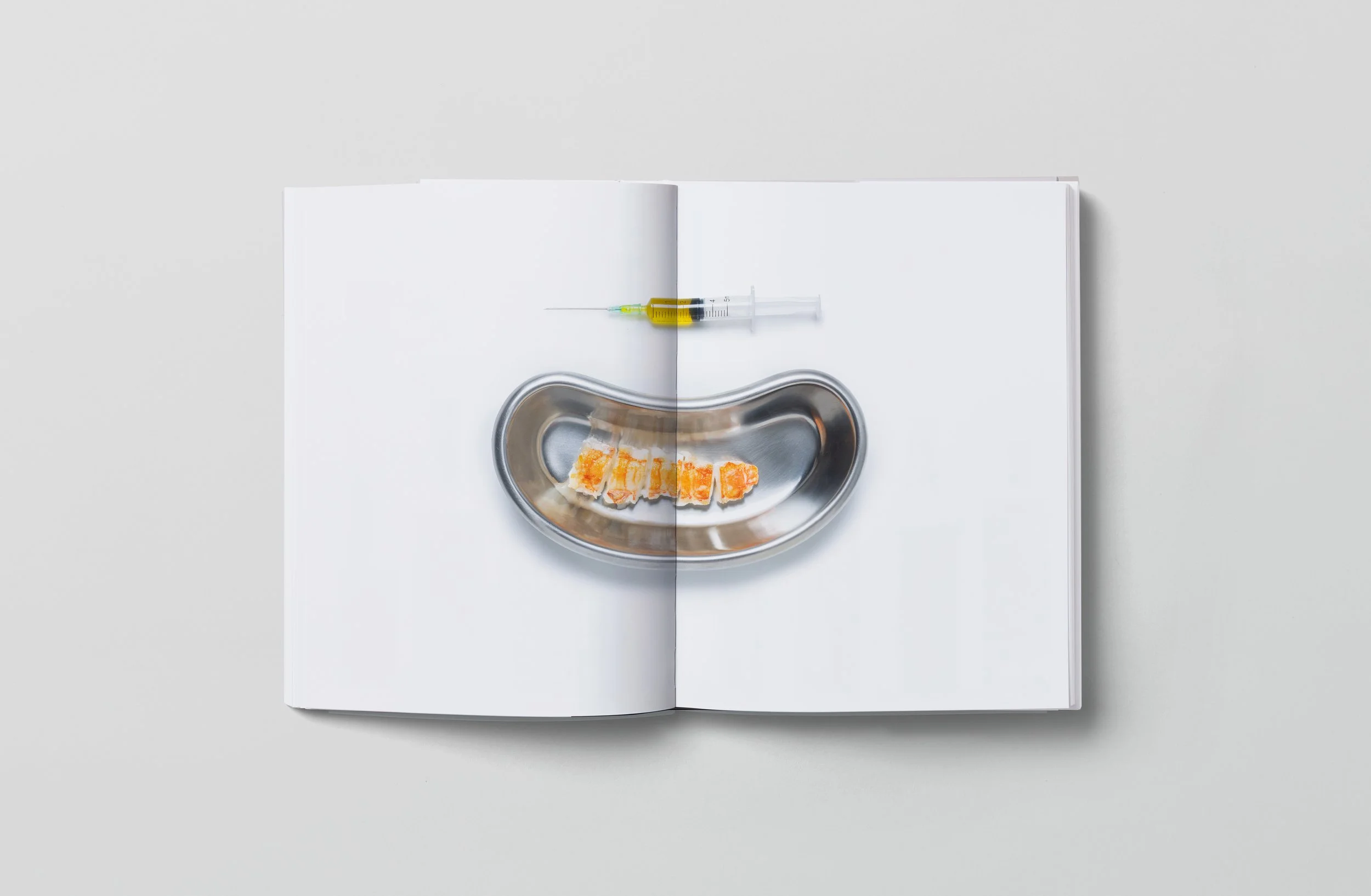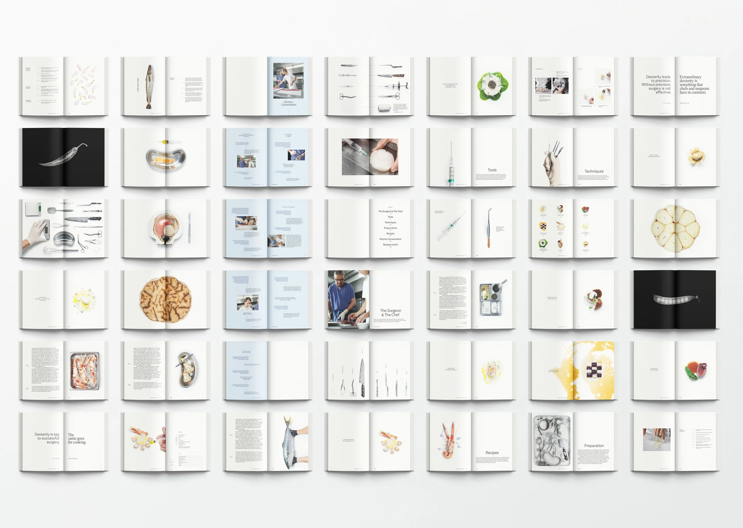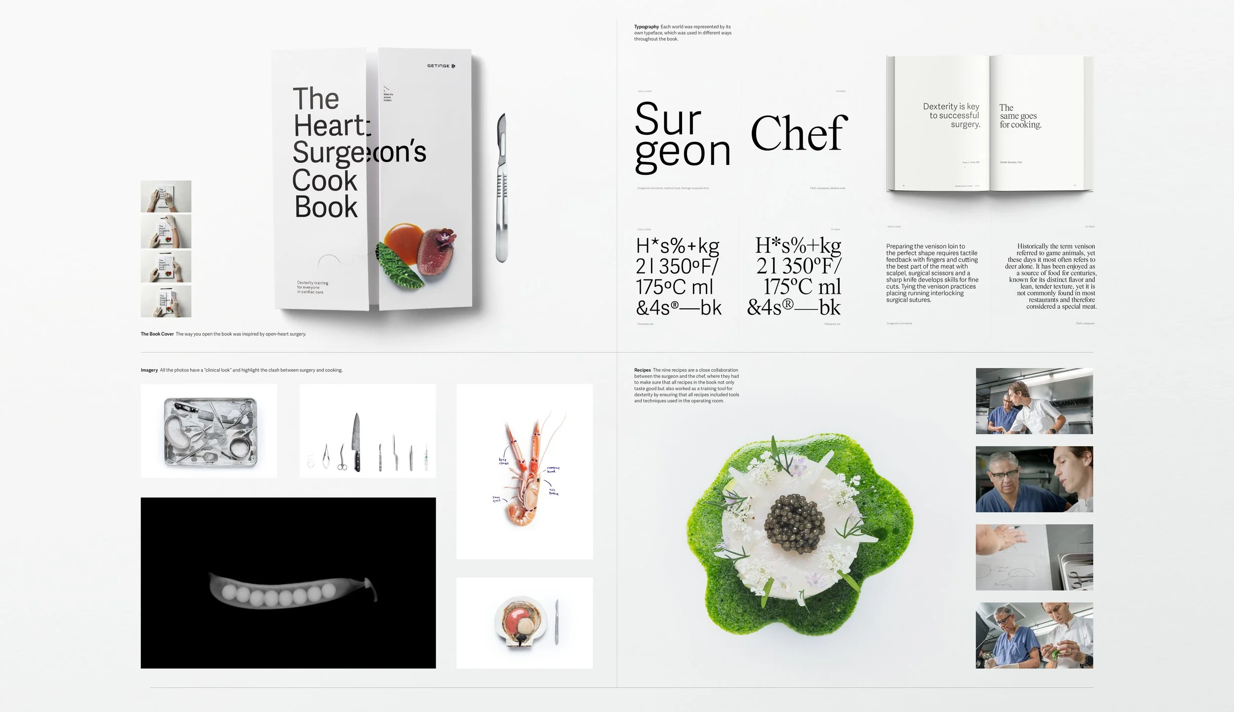 The images in the book have a “clinical look” and highlight the clash between surgery and cooking.